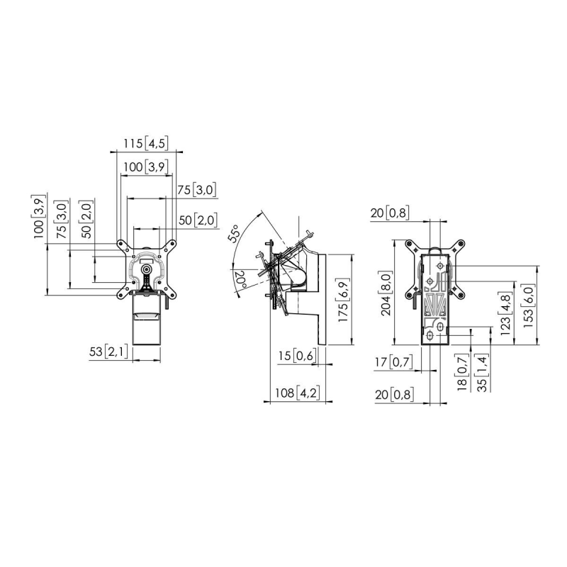 Благодаря поворотно-наклонному механизму пользователь всегда может установить идеальный угол обзора даже после установки кронштейна.